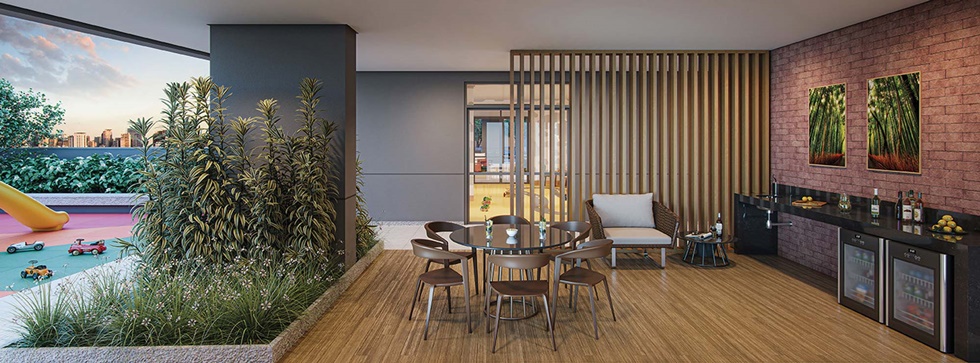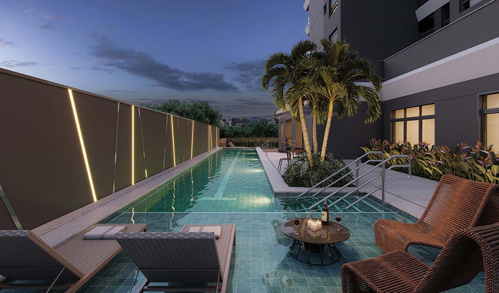 Um ambiente para os momentos íntimos com os seus convidados. A piscina e o espaço gourmet podem ser reservados para um dia especial com o seu petit comité