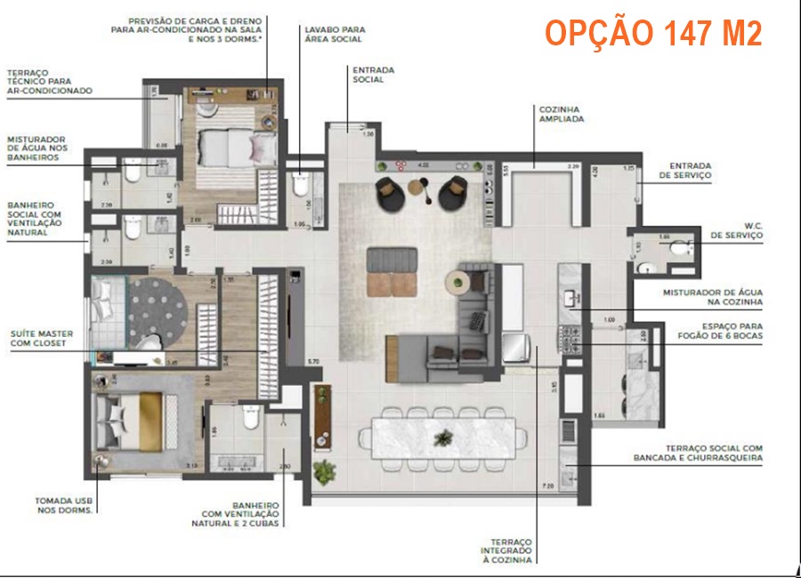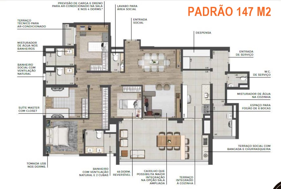 | 115 m² e 147m² | 3 a 4 dmts | 2 a 3 suítes | 2 vagas |