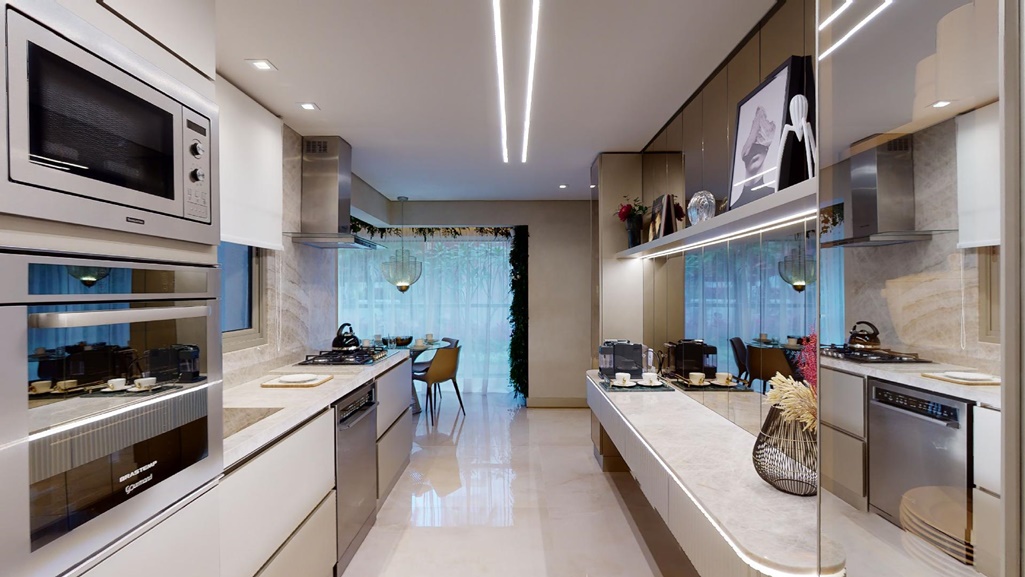A perfeita distribuição oferece amplo espaço para um closet generoso na suíte máster e deixa a área privativa adequadamente isolada da área social. O amplo terraço gourmet perfeitamente integrado ao living e a cozinha amplia os espaços de convivência interna com a família ou para receber amigos.