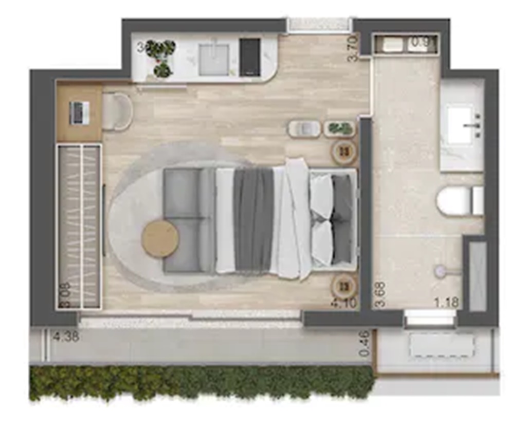 SUGESTÃO DE DECORAÇÃO PARA O STUDIO RESIDENCIAL (LUXURY APARTMENTS) DE 38 M2 FINAL 10