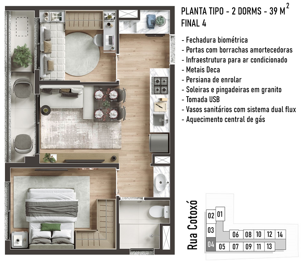 DECORADO DO APARTAMENTO DE 39 M2 COM 2 DORMITÓRIOS