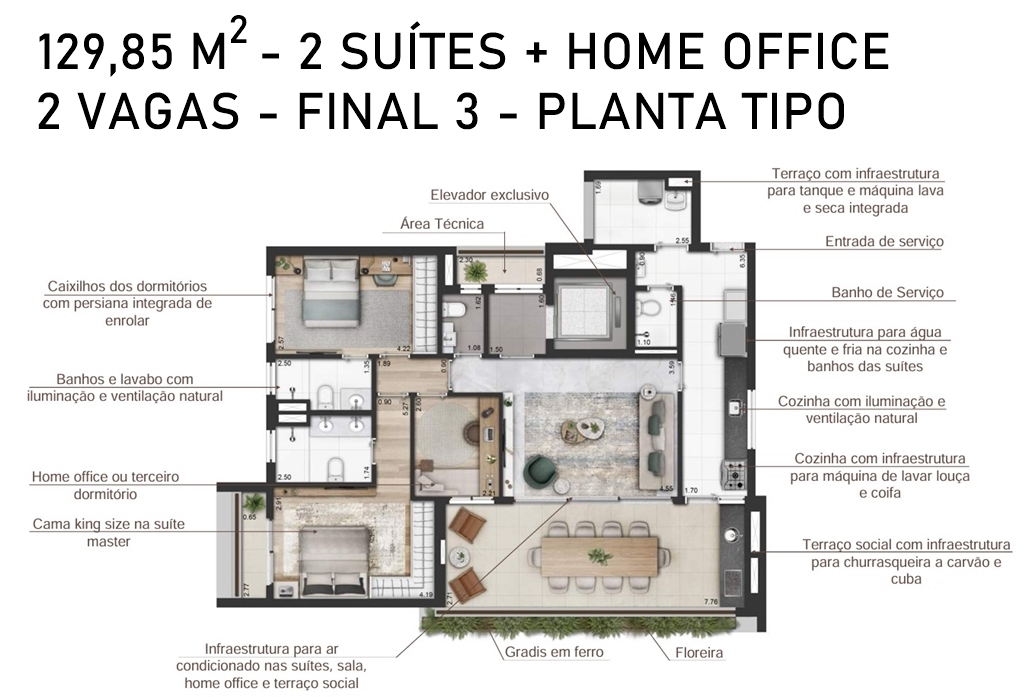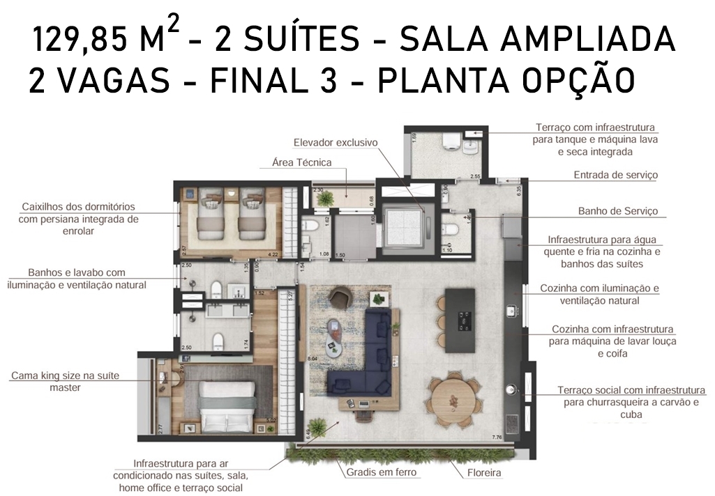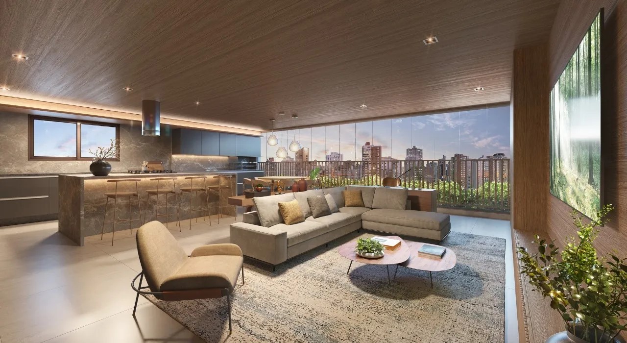 LIVING DO APARTAMENTO DE 128,50 M2 COM SUGESTÃO DE DECORAÇÃO