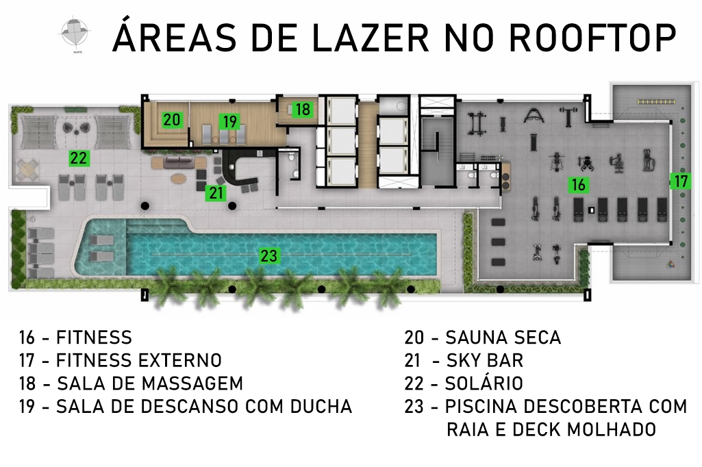 PISCINA COM DECK MOLHADO NO ROOFTOP