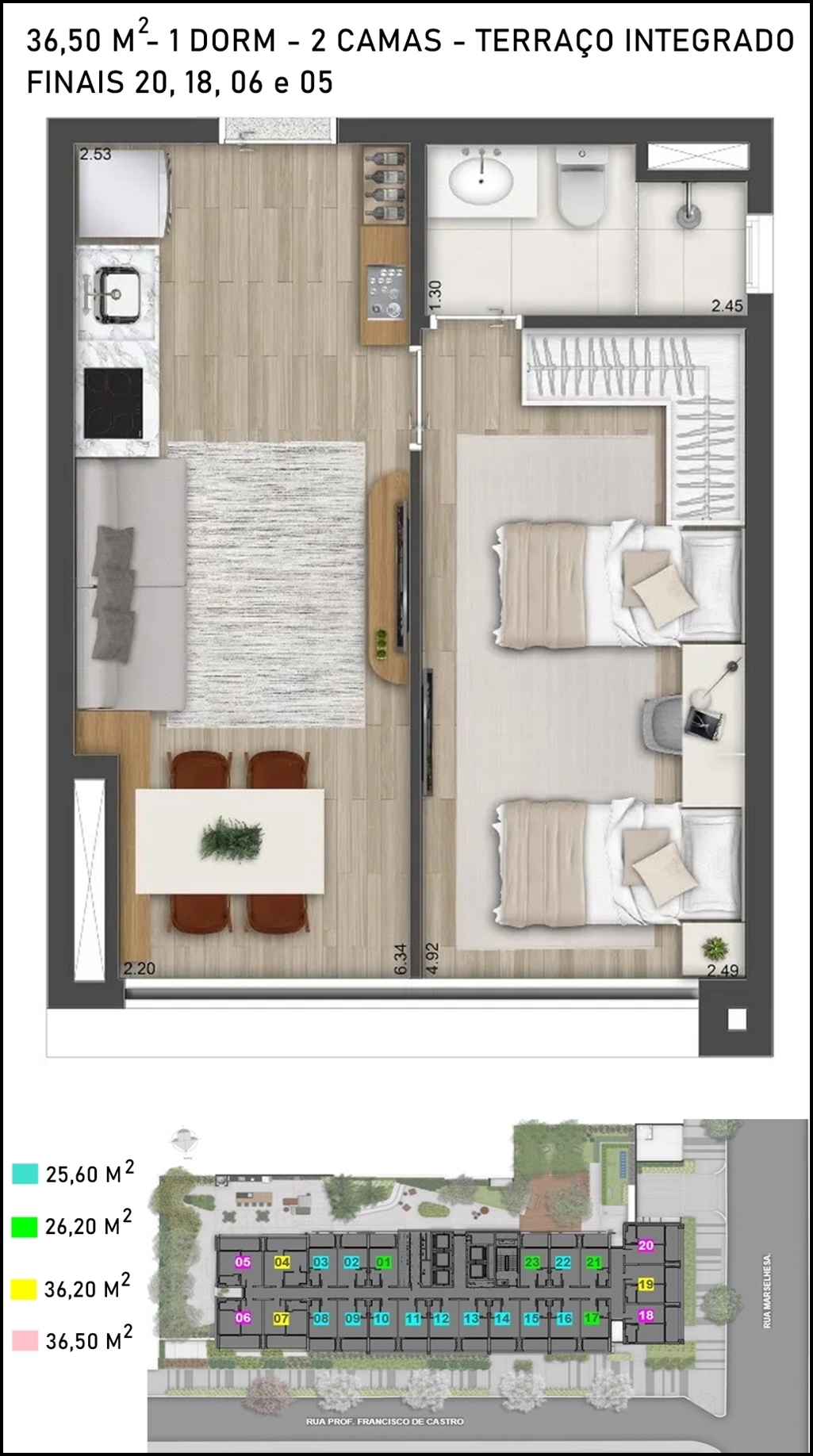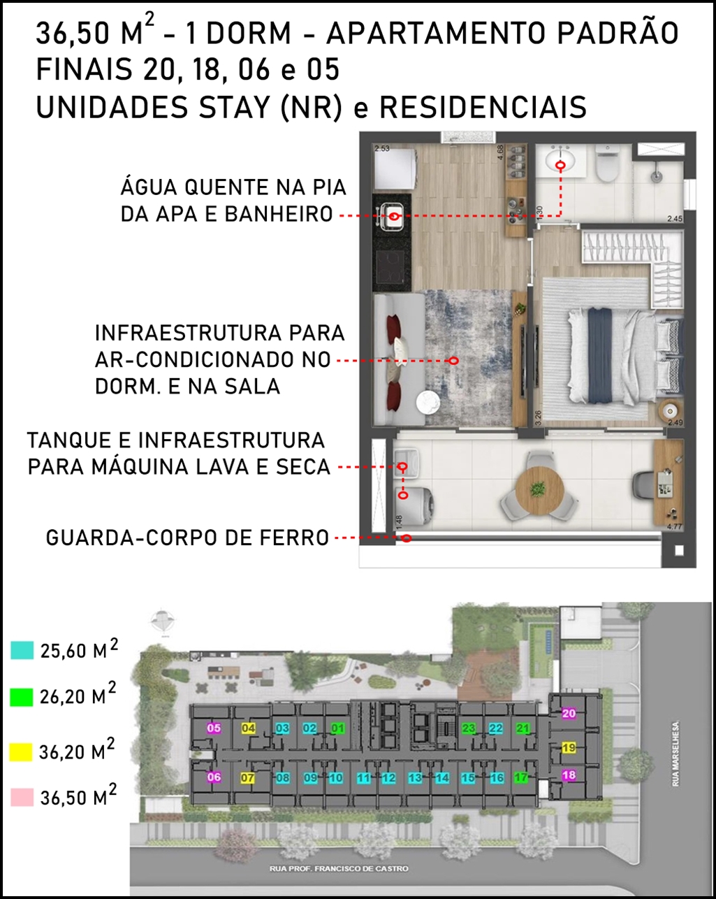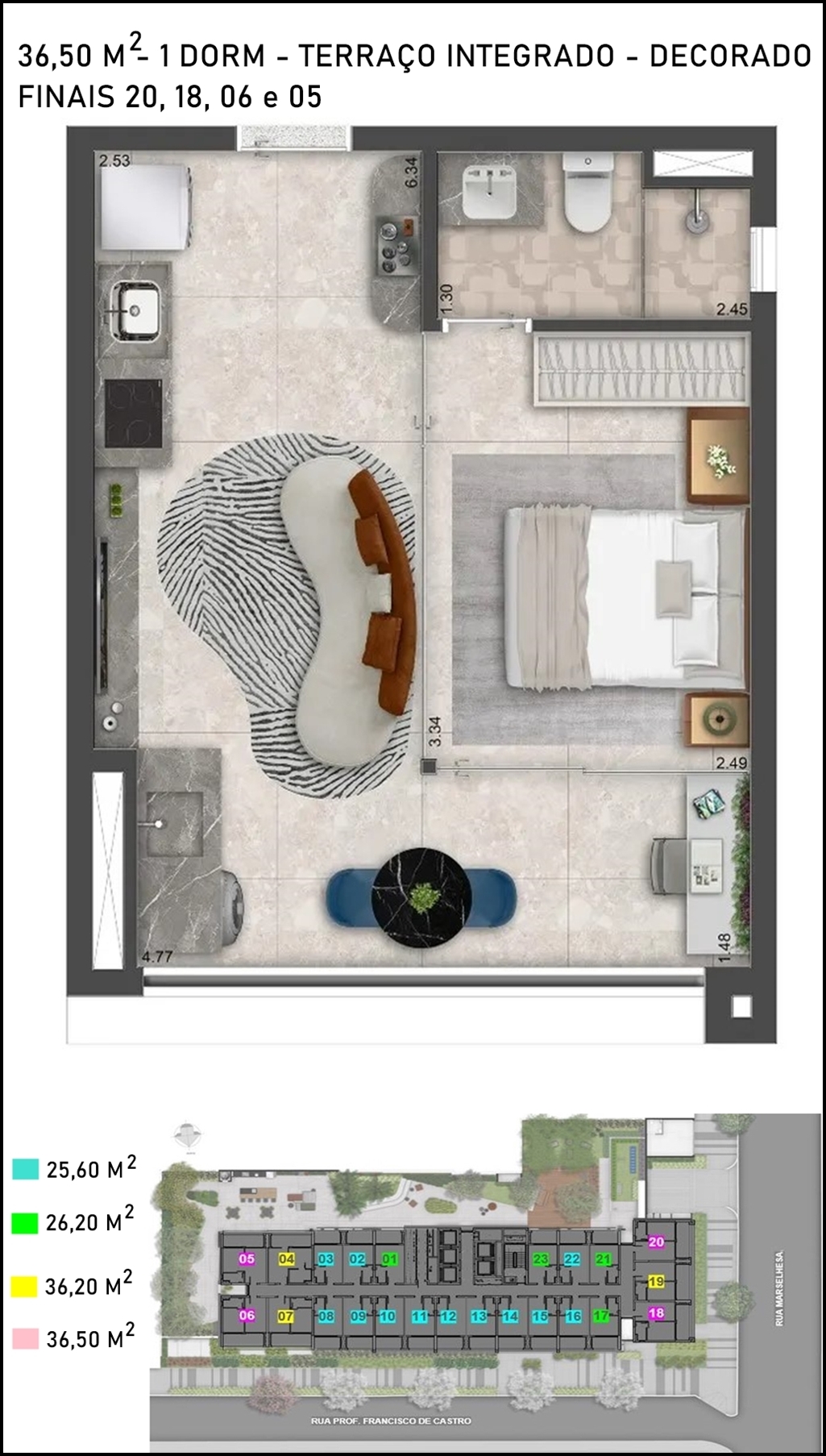 SUGESTÃO DE DECORAÇÃO PARA O APARTAMENTO DE 1 DORMITÓRIO COM 36,50 M2