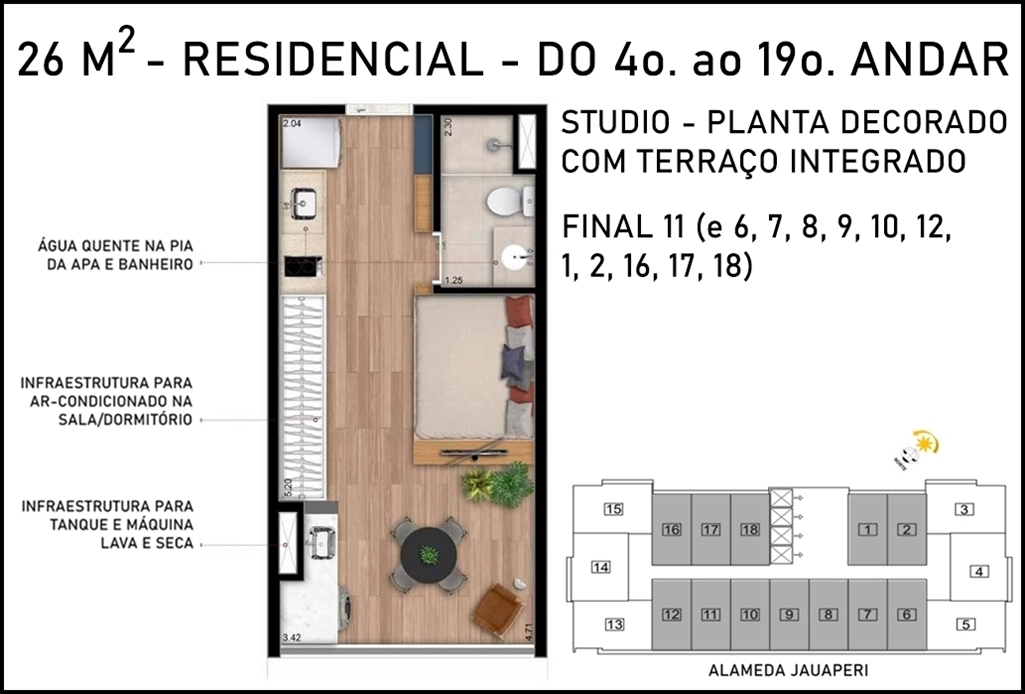 SUGESTÃO DE DECORAÇÃO PARA O STUDIO DE 26 M2