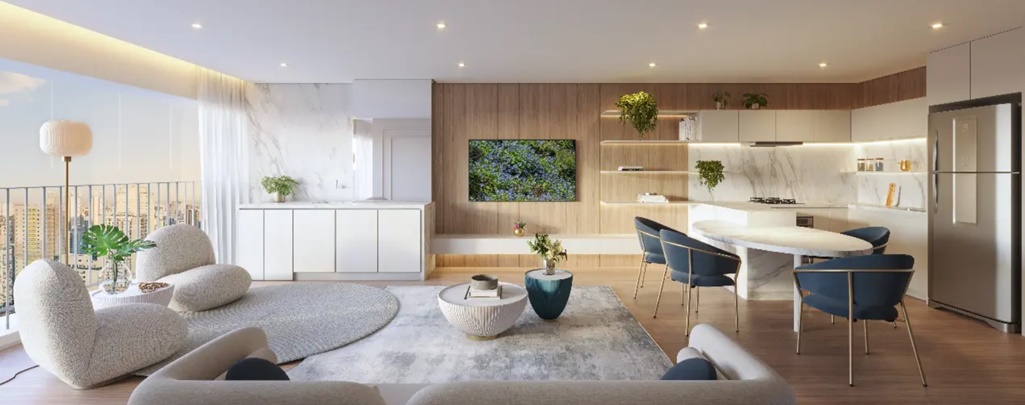 LIVING DO APARTAMENTO DE 107 M2 COM SUGESTÃO DE DECORAÇÃO