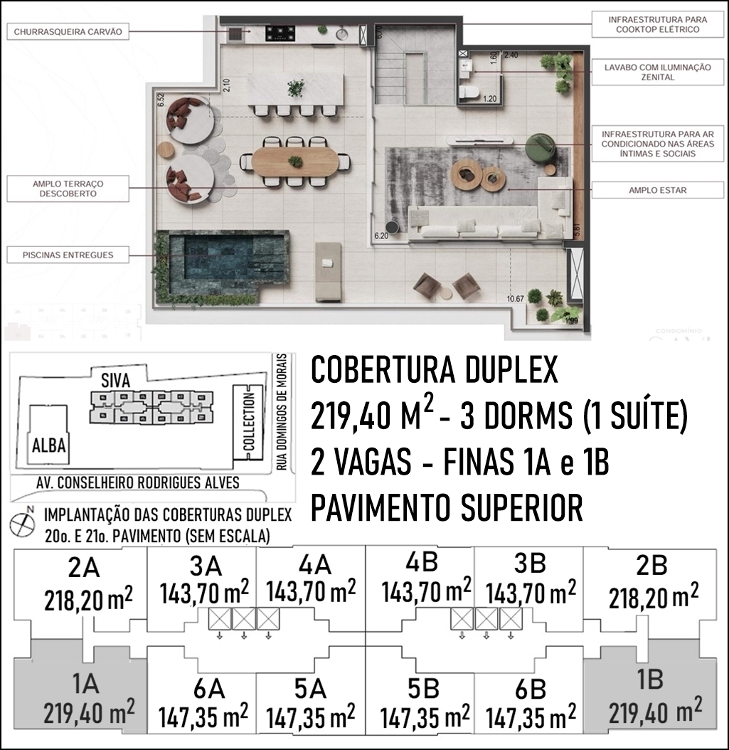 TERRAÇO DA COBERTURA DUPLEX DE 219 M2 COM SUGESTÃO DE DECORAÇÃO