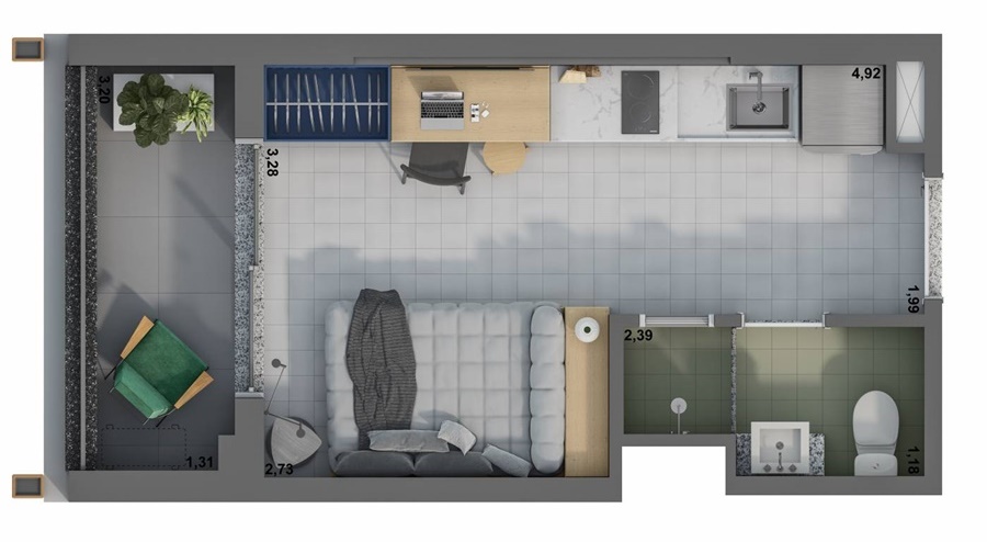 Proponho marcarmos uma visita ao local onde há uma maquete que dá uma visão tridimensional do prédio e decorados que darão a percepção de como ficará o apartamento com a disposição dos móveis.