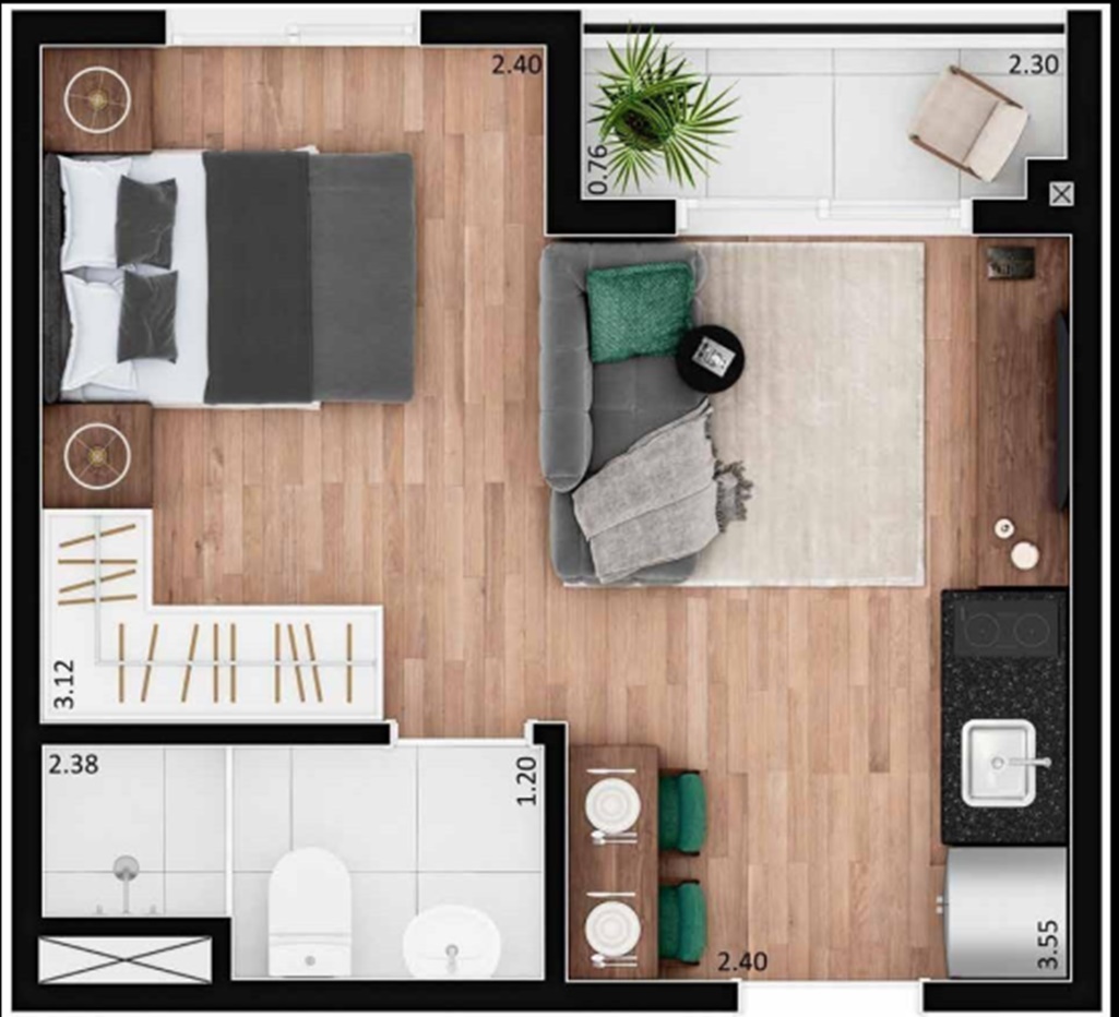 SUGESTÃO DE DECORAÇÃO PARA O APARTAMENTO DE 1 DORMITÓRIO