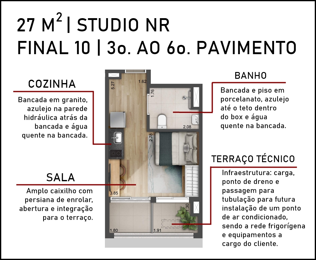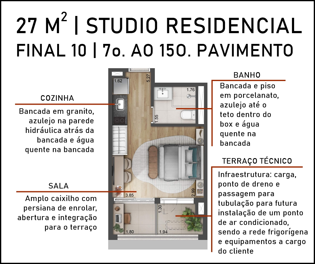 SUGESTÃO DE DECORAÇÃO PARA O STUDIOS DE 27 M2