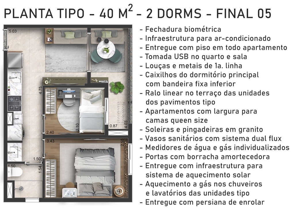 SUGESTÃO DE DECORAÇÃO PARA O LIVING DO APARTAMENTO TIPO DE 40 M2