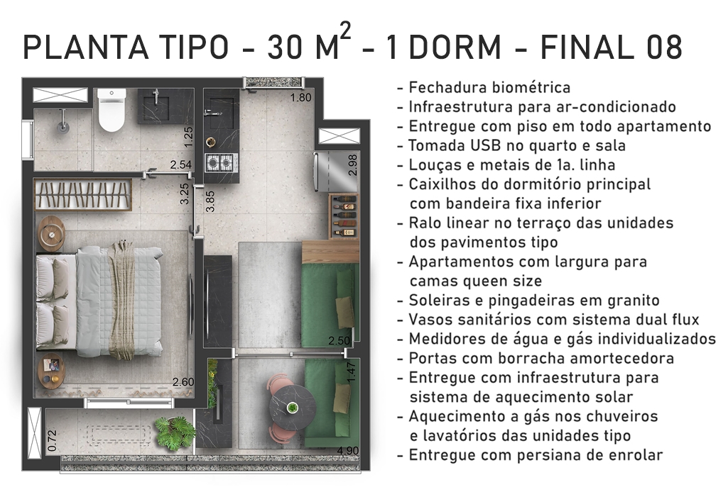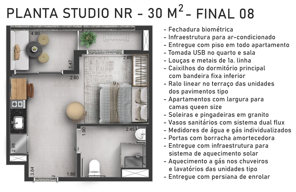 SUGESTÃO DE DECORAÇÃO PARA O STUDIO NR DE 30 M2