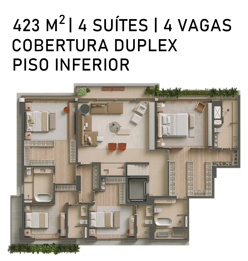SUÍTE PRICIPAL DA COBERTURA DUPLEX COM SUGESTÃO DE DECORAÇÃO