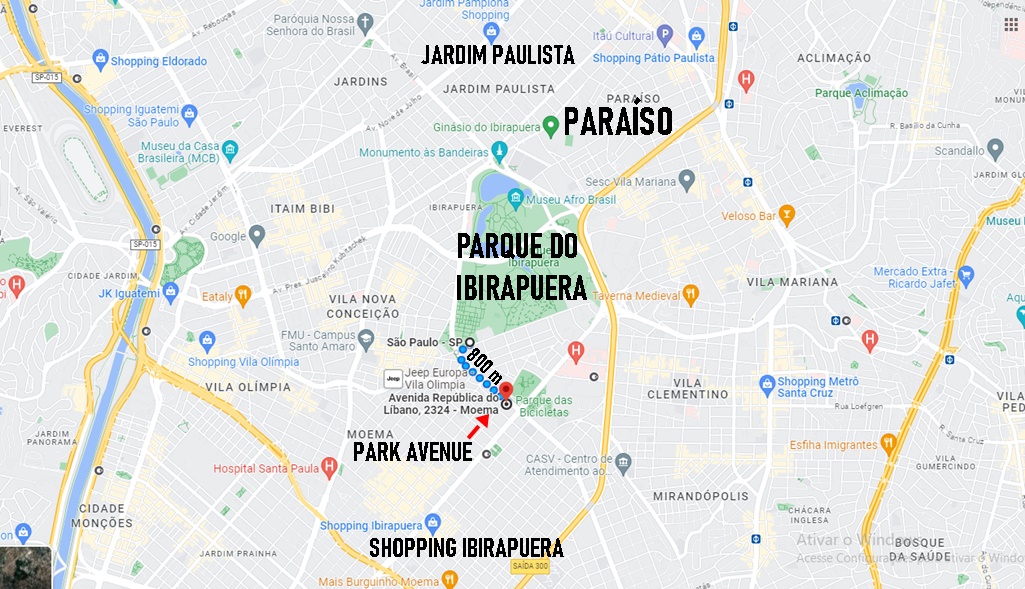 EM FRENTE AO CLUBE MONTE LÍBANO COM VISTA PARA O PARQUE DO IBIRAPUERA E PARQUE DAS BICICLETAS