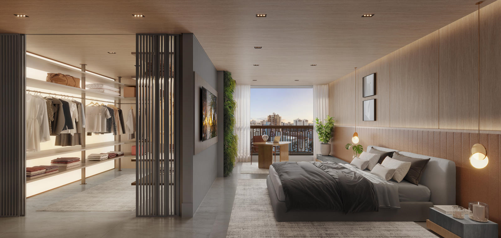SUÍTE MÁSTER DO APARTAMENTO DE 224 M2 COM SUGESTÃO DE DECORAÇÃO