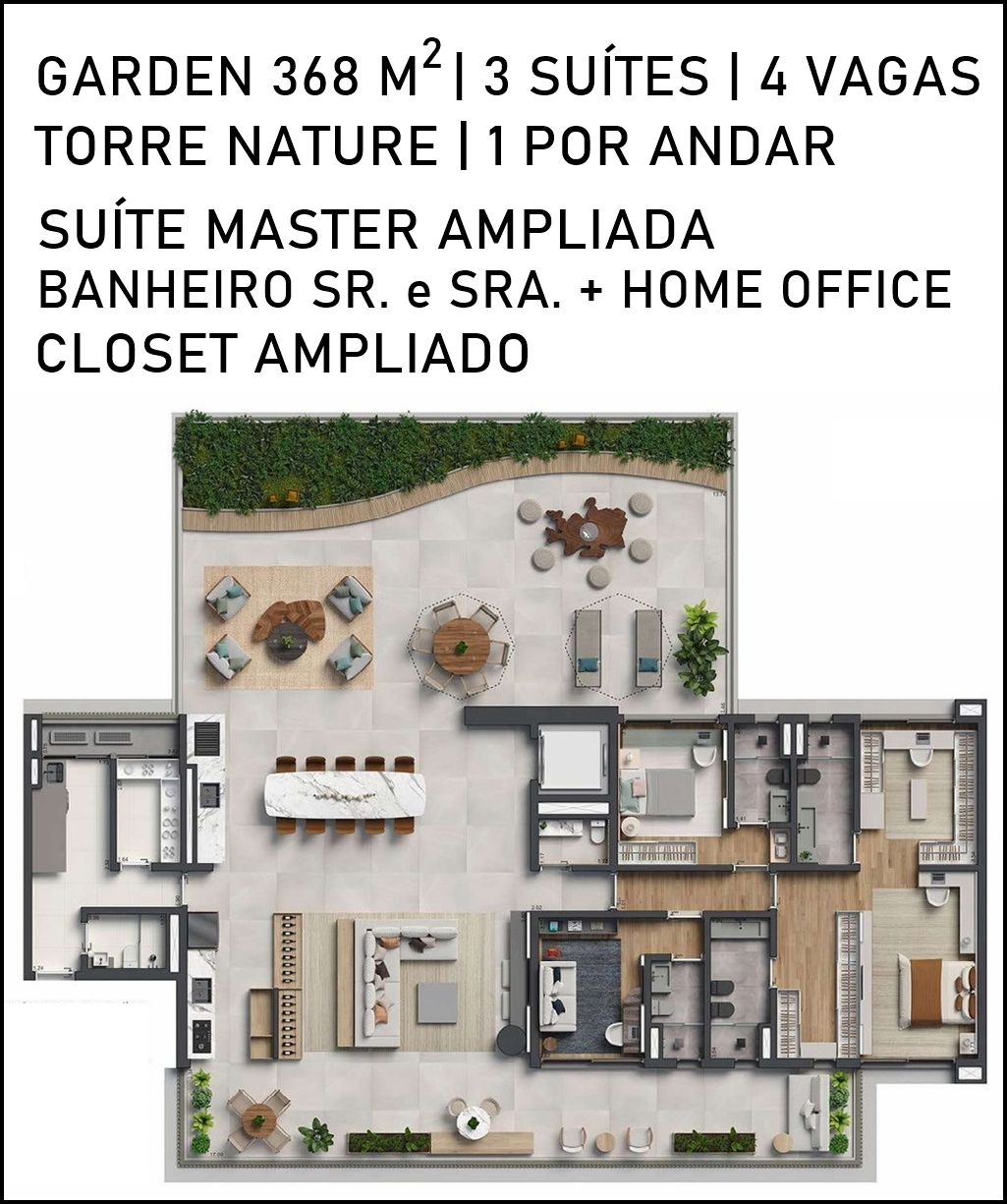 SUGESTÃO DE DECORAÇÃO PARA A ÁREA EXTERNA DO GARDEN DE 368 M2