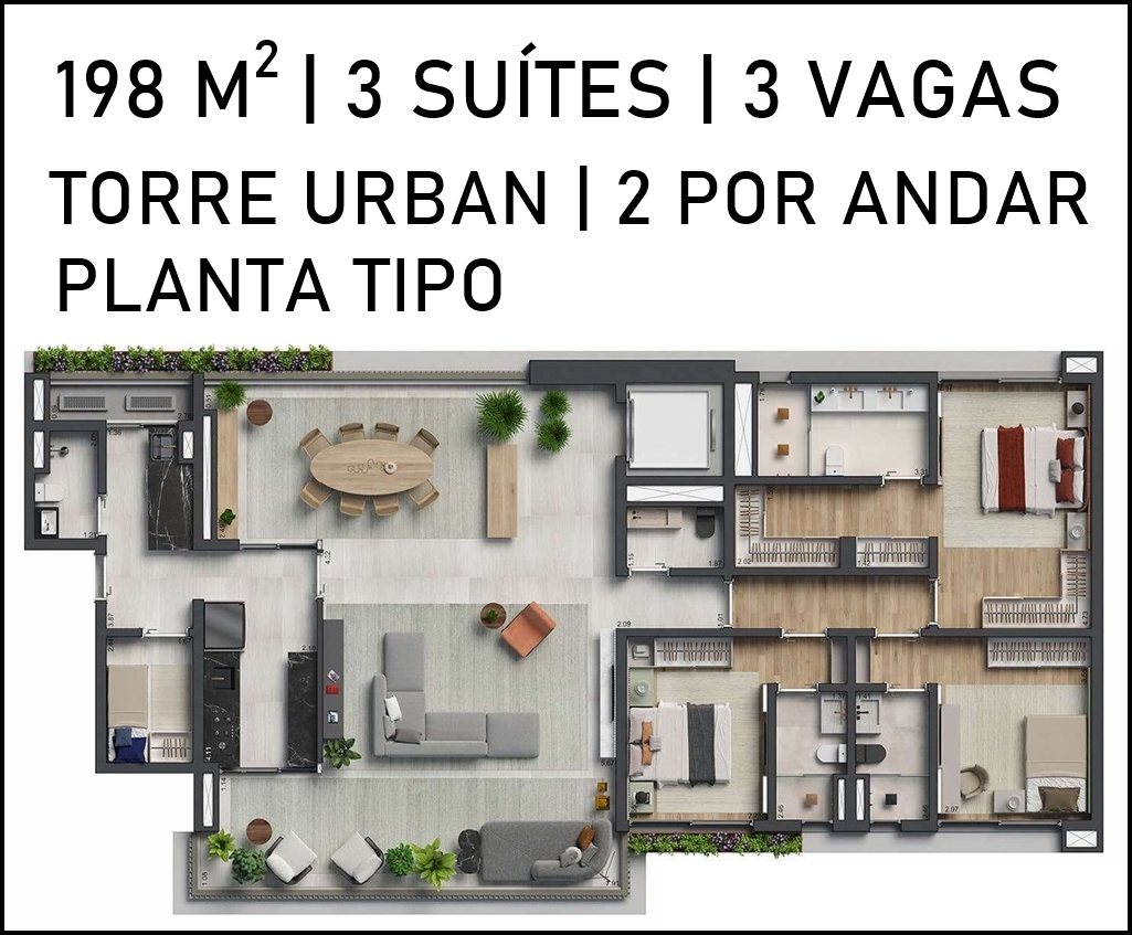 SUGESTÃO DE DECORAÇÃO PARA O LIVING AMPLIADO DO APARTAMENTO OPÇÃO DE 198 M2