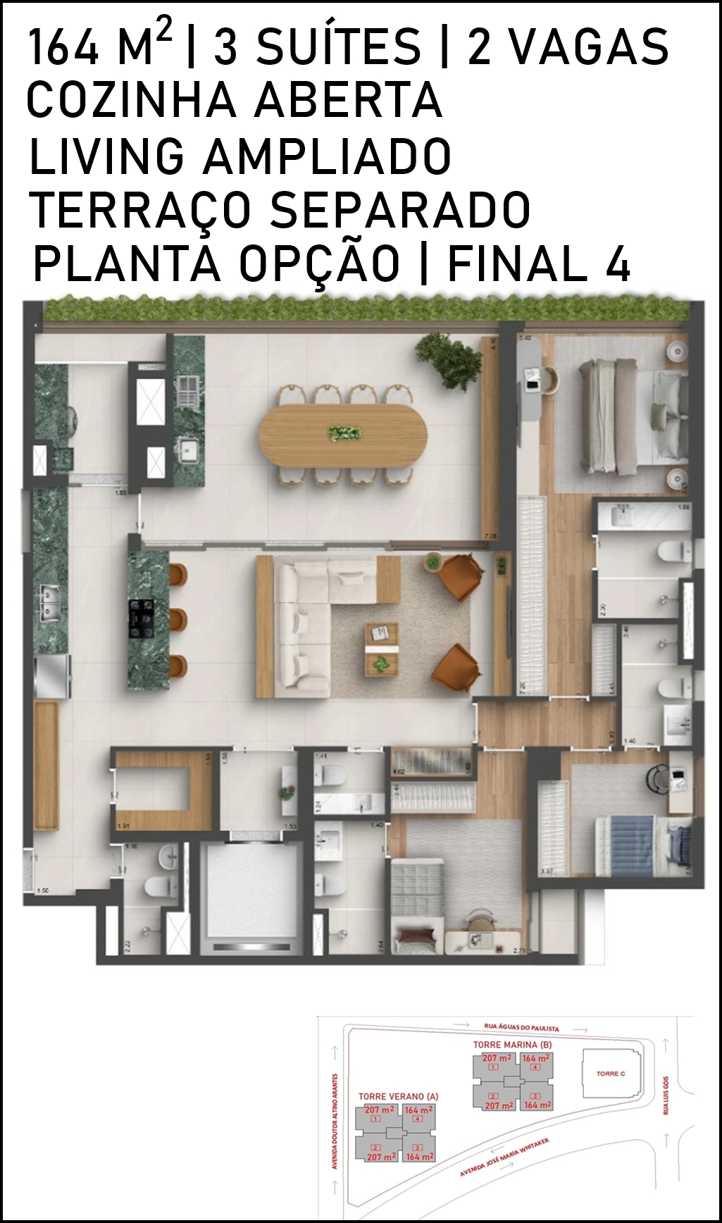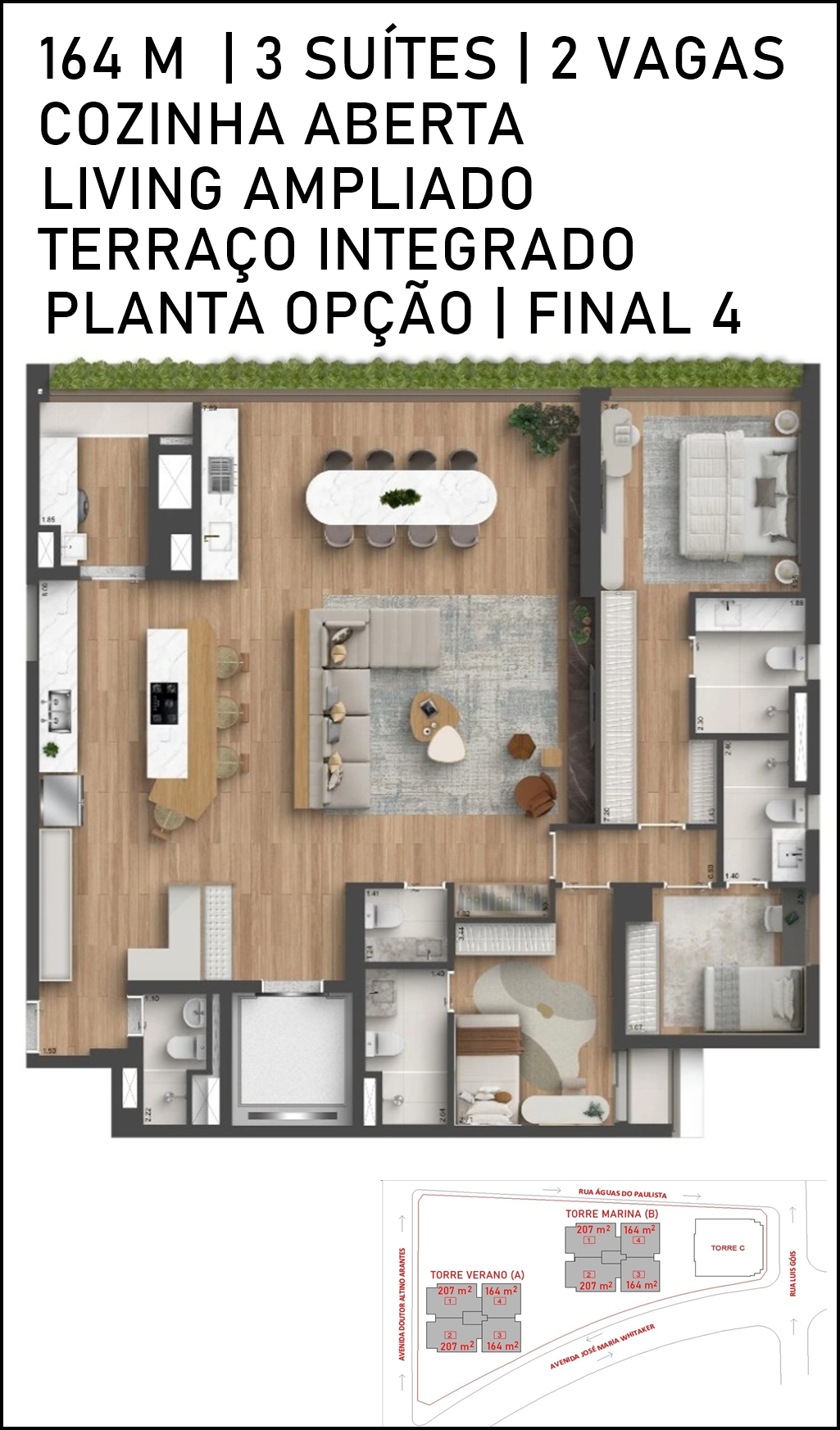 LIVING DO APARTAMENTO DE 164 M2 COM SUGESTÃO DE DECORAÇÃO