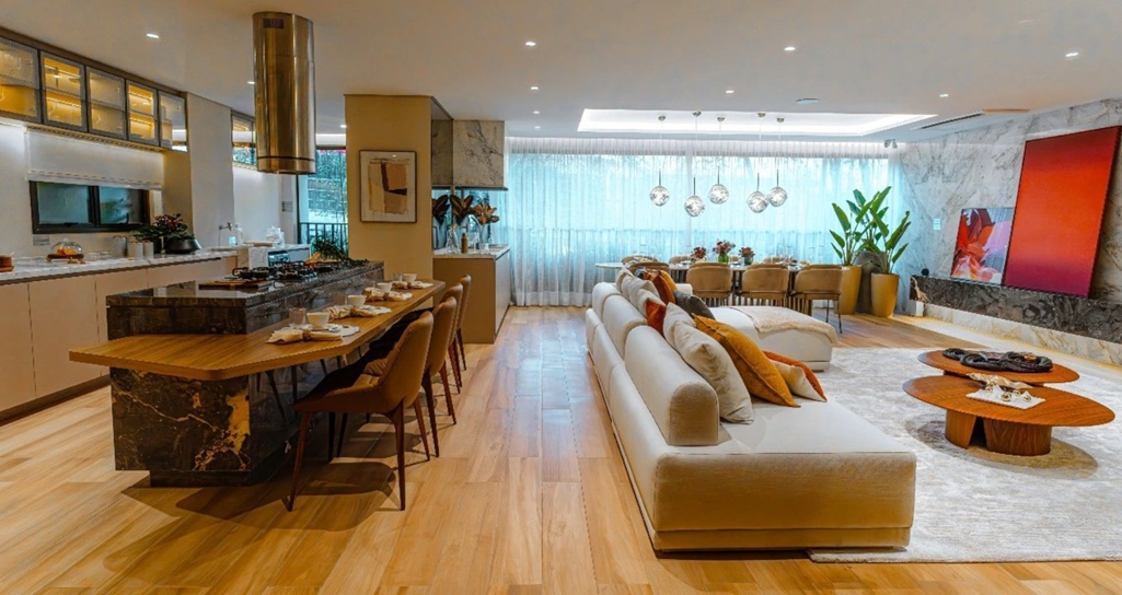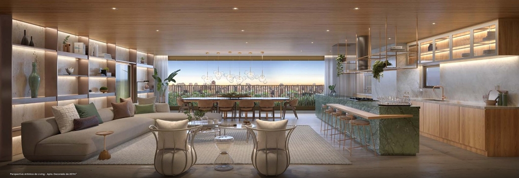 LIVING DO APARTAMENTO DE 207 M2 COM SUGESTÃO DE DECORAÇÃO